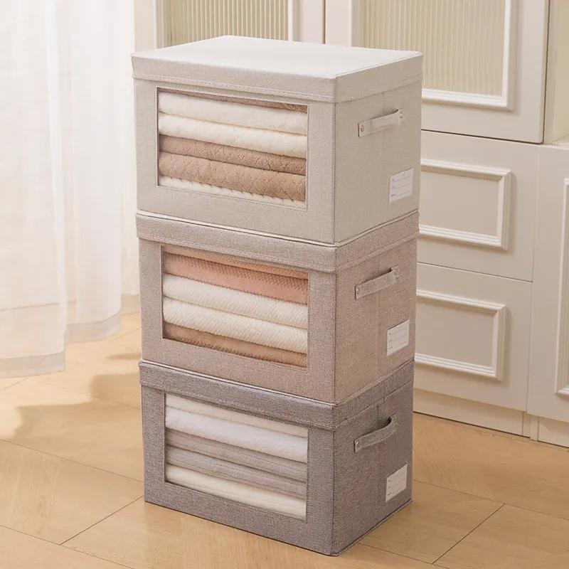 Вместительный ящик для хранения с передним окном, прозрачный ящик для хранения хлопка и льна, одежда, хлопковое простое одеяло, офисные корзины для сбора и хранения документов Send randomly
