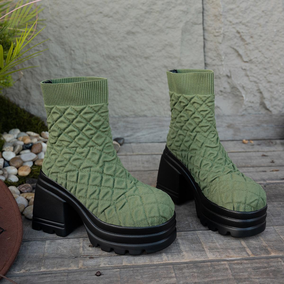Внешняя торговля большой размер новая мода вязаные короткие ботинки высокий верх эластичные носки ботинки толстый каблук толстая подошва чехол для стопы европейский и американский мар 42 зелёный