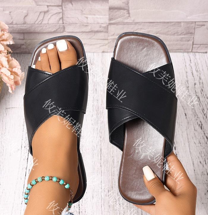Внешняя торговля большой размер плоская подошва мягкая подошва полушлепанцы женские лето 2025 корейская версия круглый носок ленивые шлепанцы женская обувь сандалии женские 35
