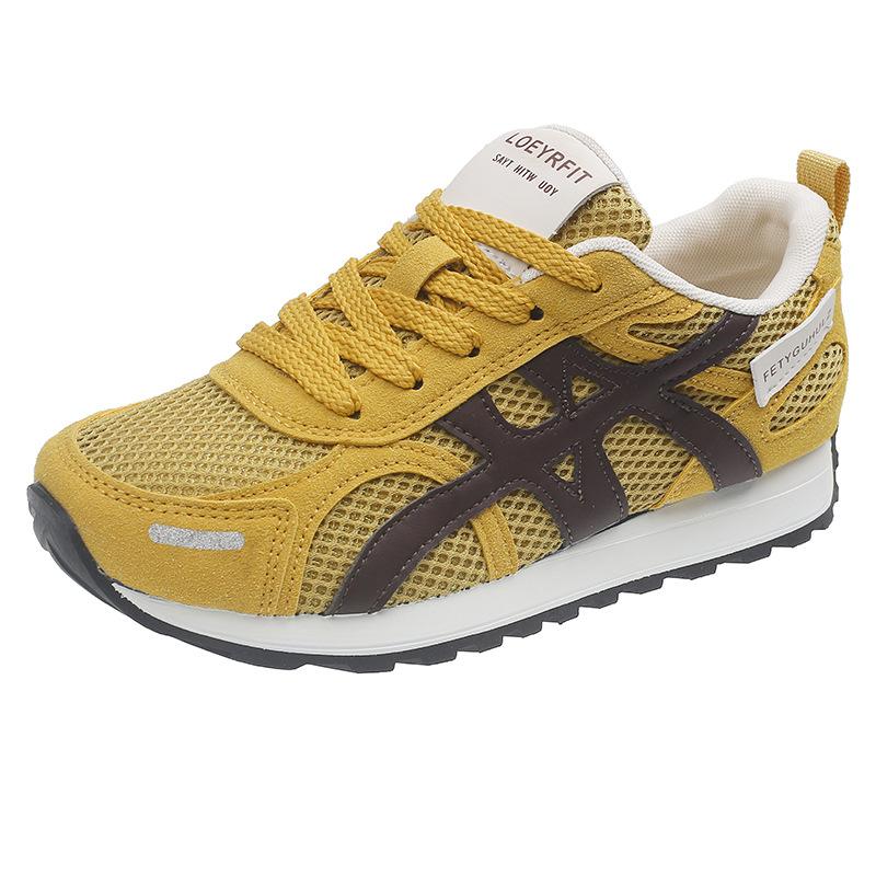 Внешняя торговля европейские товары 2025 лето новые универсальные сетчатые повседневные спортивные туфли женские с толстой подошвой на шнуровке для бега для папы 35 жёлтый