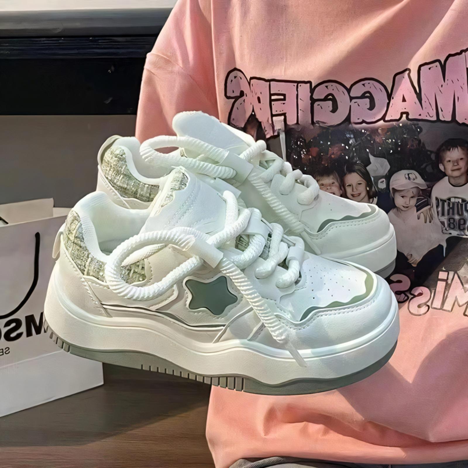 Внешняя торговля маленькие белые туфли женские весенние новые маленькие ароматные ветровая обувь женские дышащие модные студенческие туфли на толстой подошве повседневные туфли 35 зелёный