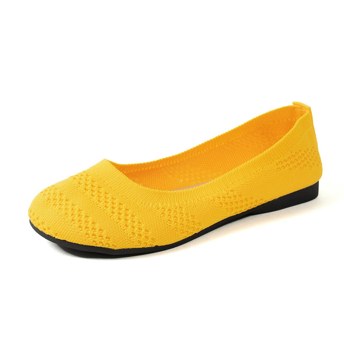 Внешняя торговля новый большой размер широкая голова вязание муха легкий рот одинарная обувь женская однотонная круглая голова повседневная плоская подошва низкий подъем ленивые Дудо 43