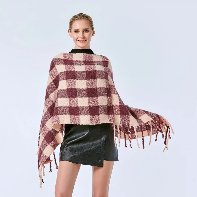 Внешняя торговля Amazon горячая Распродажа европейский и американский стиль новинка осень-зима круглая Пряжа Толстая кисточка маленькая клетчатая Женская Clo