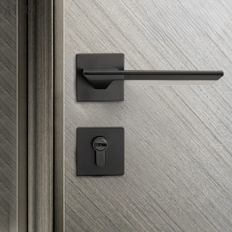 Внутренний дверной замок, квадратная черная простая Бесшумная ручка, деревянная ручка, универсальный раздельный дверной замок для спальни ...