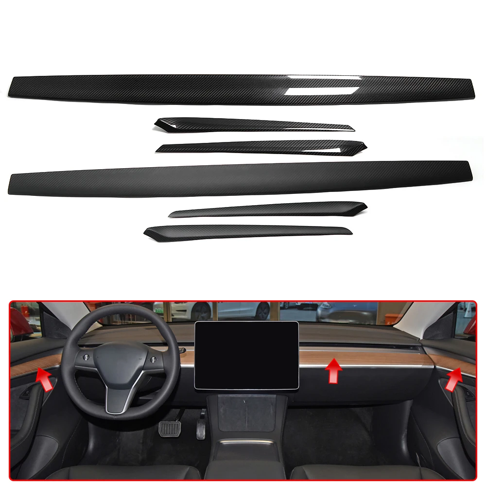 Внутренняя отделка из углеродного волокна для Tesla Model 3 2017-2022, модель Y, передняя дверь автомобиля, центральная консоль, декоративная панель панели, отделка