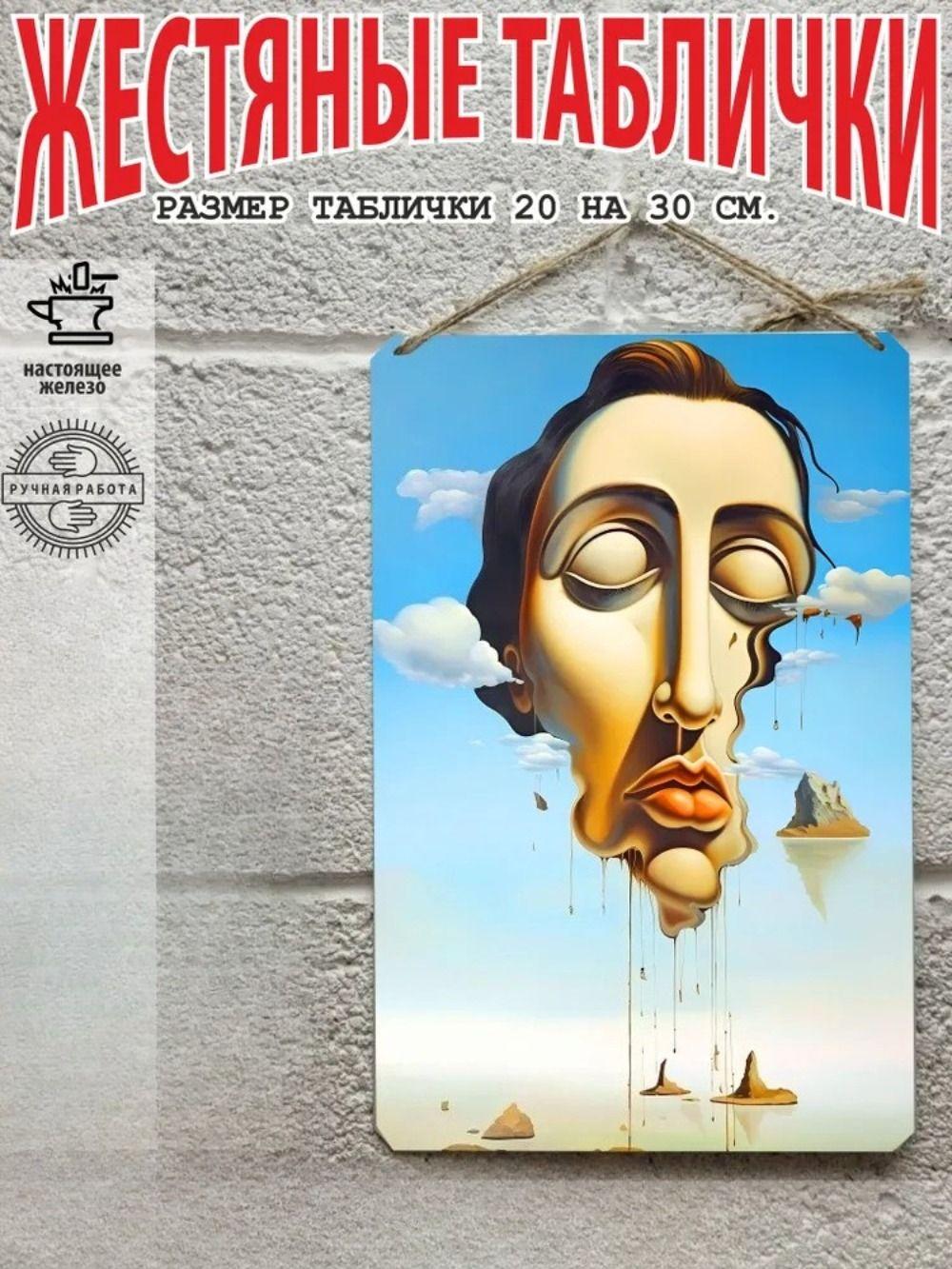 Внутренняя роспись, жестяная пластина 20 на 30 см. в стиле Сальвадора Дали подарочная коробка в комплекте