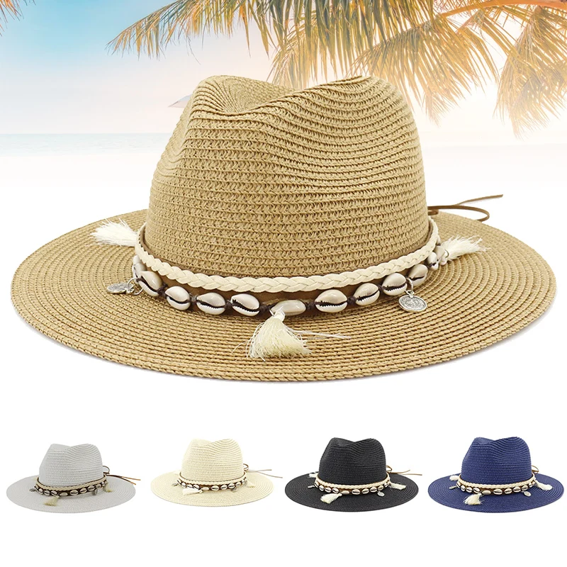 Вогнутая соломенная шляпа для отпуска с веревкой в мексиканском национальном стиле, дышащая шляпа Tomboy с широкими полями, летняя пляжная шля...