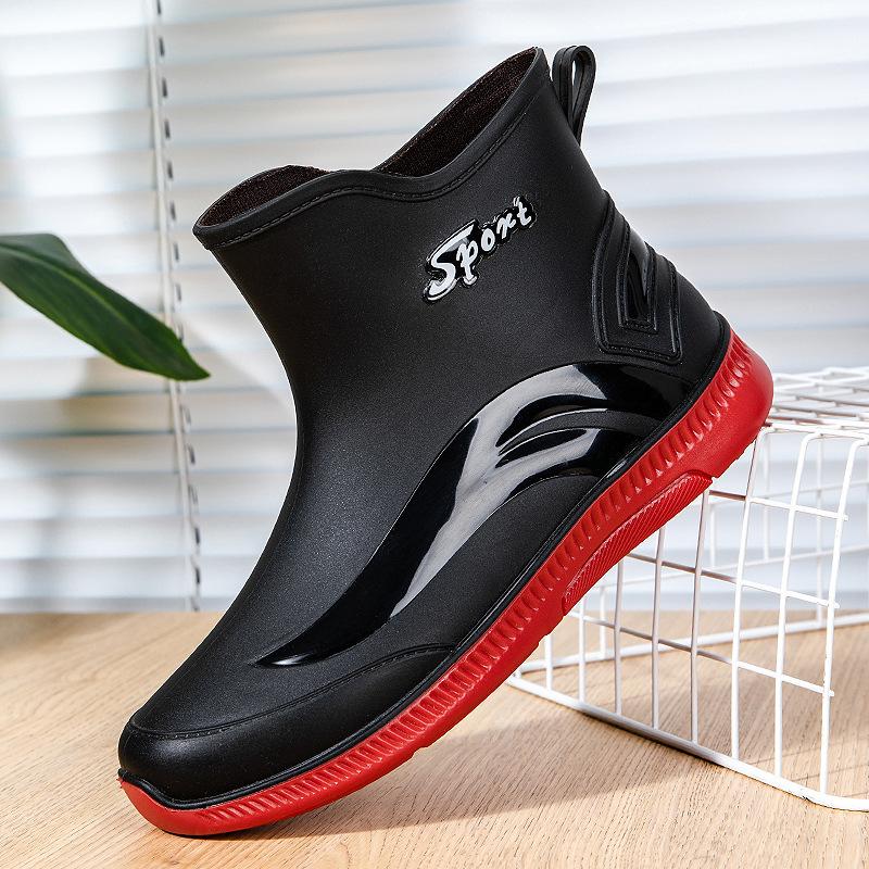 Водная обувь мужская дождевая обувь нескользящая водонепроницаемая обувь флисовые резиновые сапоги закрытая резиновая обувь короткая резиновая обувь мужская 44 красный