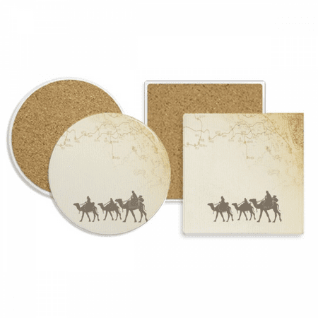 Camel Chinese Painting Silk Road map Coaster Cup Mug Holder Absorbent Stone Cork Base Set