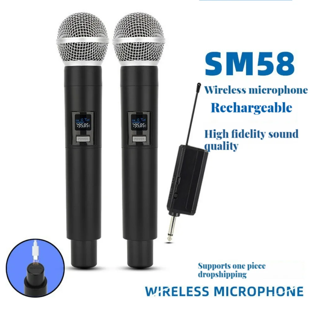 Wireless Microphone Handheld 1200mah UHF Professional Dynamic Mic Karaoke System Micphone with Receiver for Amplifier PA System
