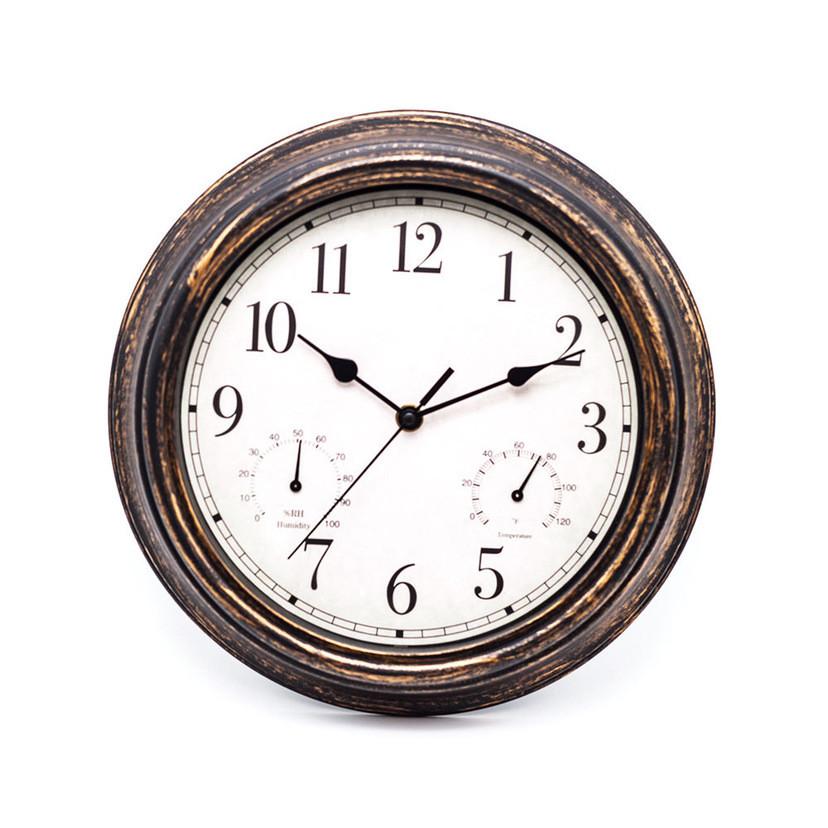 Водонепроницаемые ретро-часы с дисплеем, термометром и гигрометром для использования в помещении Black Copper