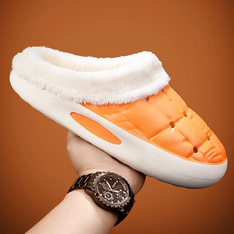 Водонепроницаемые теплые плюшевые зимние женские меховые тапочки домашние сланцы домашняя обувь на толстой подошве Нескользящие однотонные сандалии для пар