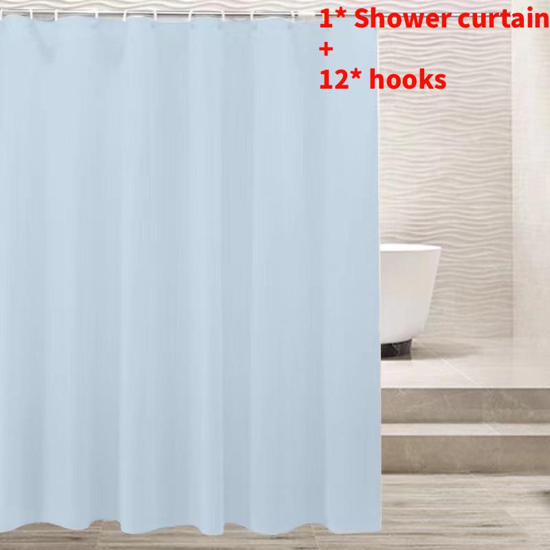 Водонепроницаемый Цвет Однотонный Полиэстер Шторка для Душа Набор Крючков Для Декора Ванной Комнаты Light Blue