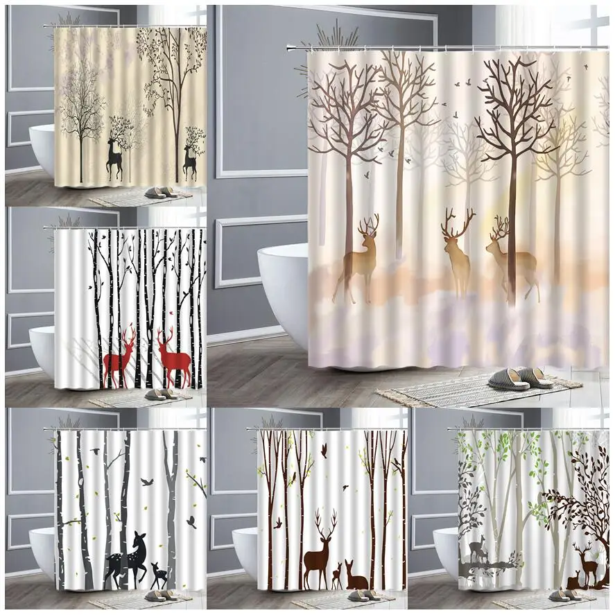 Водонепроницаемый душевые наборы занавесок лесной пейзаж с принтом «олень», Nordic Стиль полиэстер ткань, крючки, станок и Ванная комната штор...