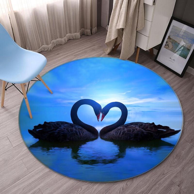 Водонепроницаемый коврик для пола с принтом лебединой пары, нескользящий ковер, круглый коврик для комнаты, белый коврик в виде лебедя, коврик для кухни, ванной комнаты