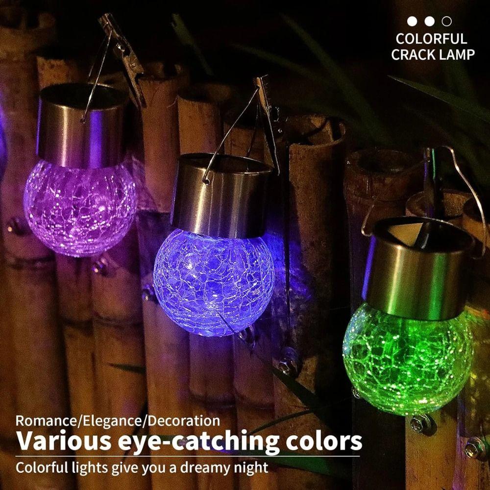Водонепроницаемый треснувший стеклянный шар с зажимами, светодиодные глобусные светильники, подвесные солнечные фонари для сада