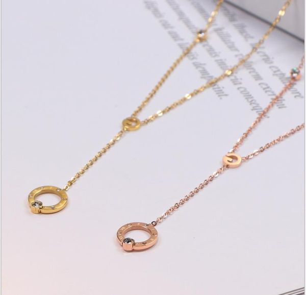 digital ring single diamond pendant necklace titanium steel circle hollow necklace short chain, Silver