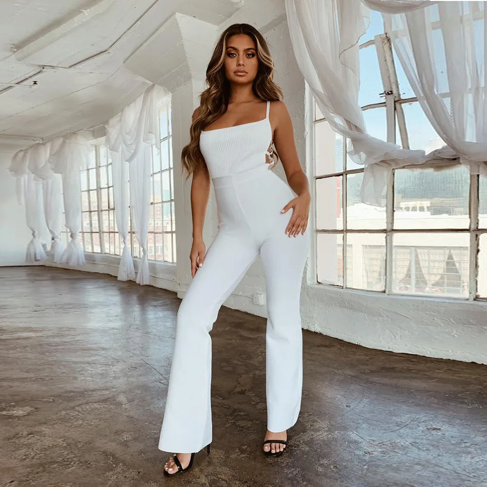 White Black Womens Rompers Jumpsuit Sexy Backless Spaghetti Strap Sleeveless Boot Cut Elegant Bodysuit Bandage Overalls