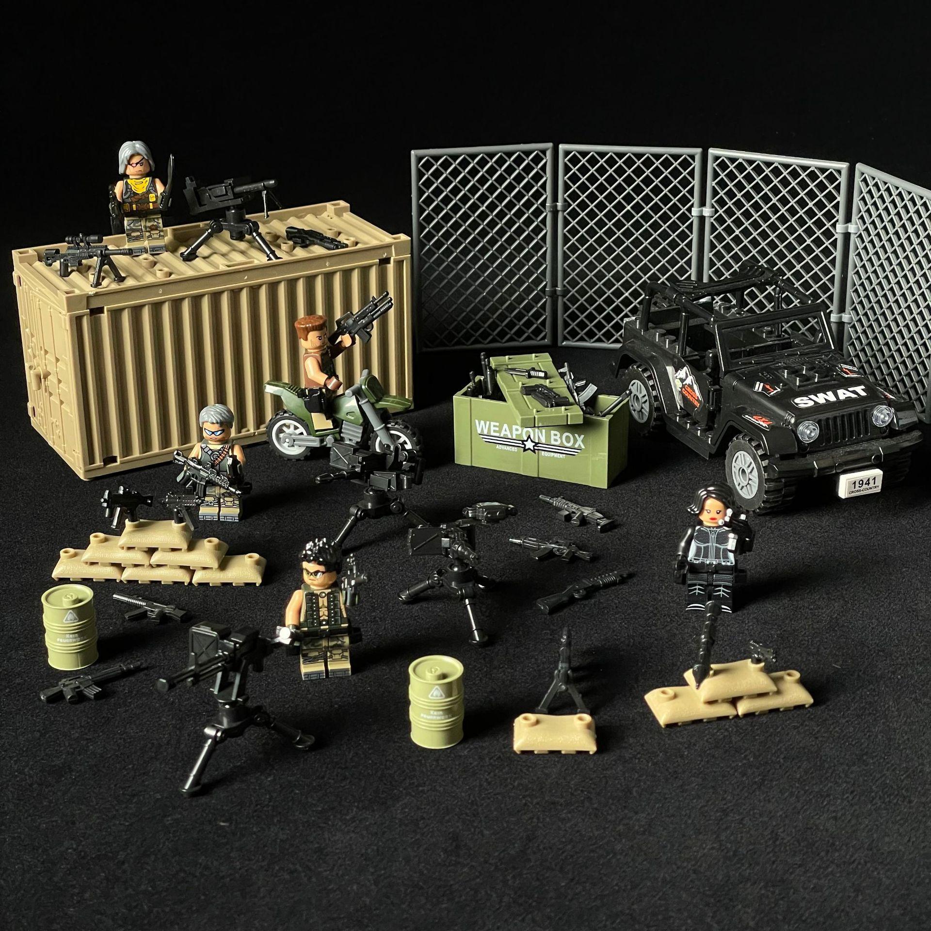 Военный строительный блок Спецназ Полиция Злодей Мятежник Наемник Аванпост Контейнер Кукла Мальчик Коллаж Игрушка