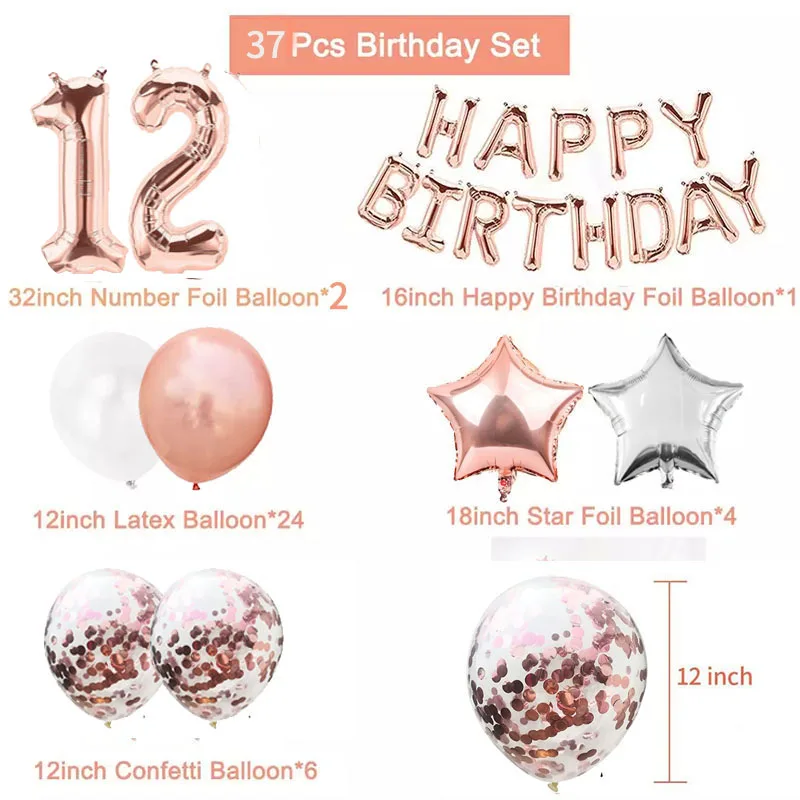 Воздушные шары из розового золота с цифрами 12 фольга, латекс, украшения для вечеринки в честь Дня Рождения, для детей, мальчиков, девочек, 12 л...