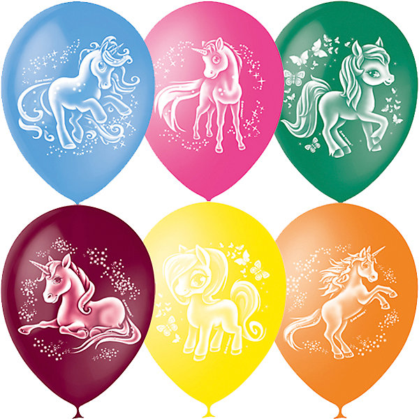 Воздушные шары Latex Occidental "Волшебные лошадки" 50 шт., пастель + декоратор