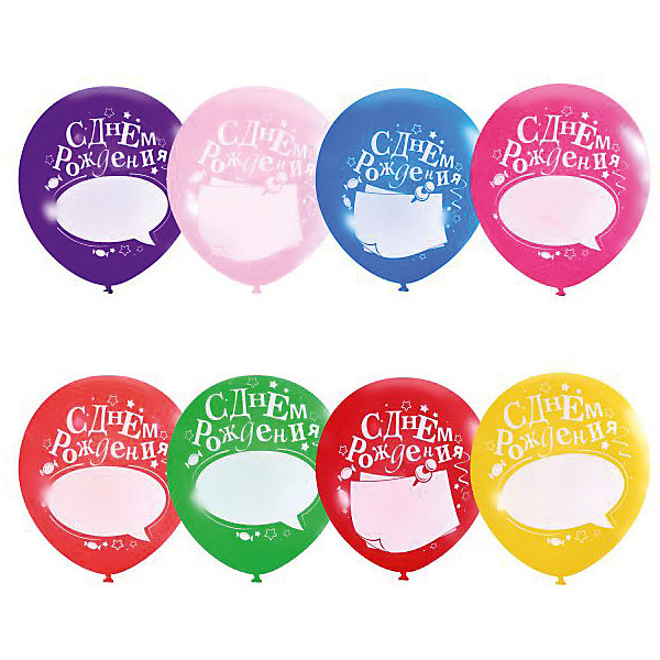 Воздушные шары Latex Occidental "С днём рождения. С маркером" 10 шт., пастель + декоратор (шёлк)