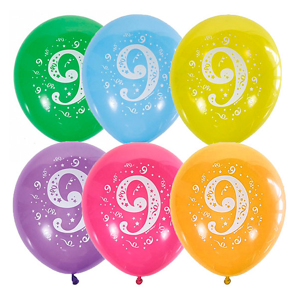 Воздушные шары Latex Occidental "Цифра Девять" 10 шт, пастель + декоратор, Разноцветный, Воздушные шары Latex Occidental "Цифра Девять" 10 шт, пастель + декоратор