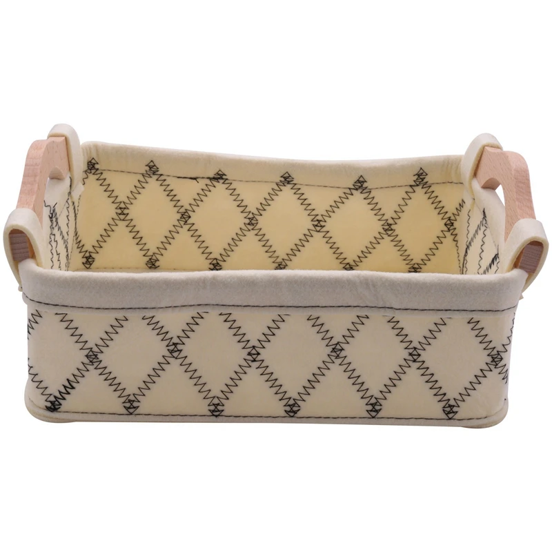 Войлочная коробка для белья с ручкой из хлопка и льна, настольная корзина для хранения мусора (маленькая кремово-цветная) и настенный гобеле...