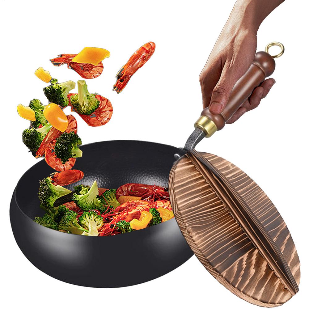 Вок Антипригарный Традиционный Железный Вок Эргономичная Непокрытая Железная Сковорода С Крышкой Для Дома На Открытом Воздухе Ресторана Кемпинга В Помещении