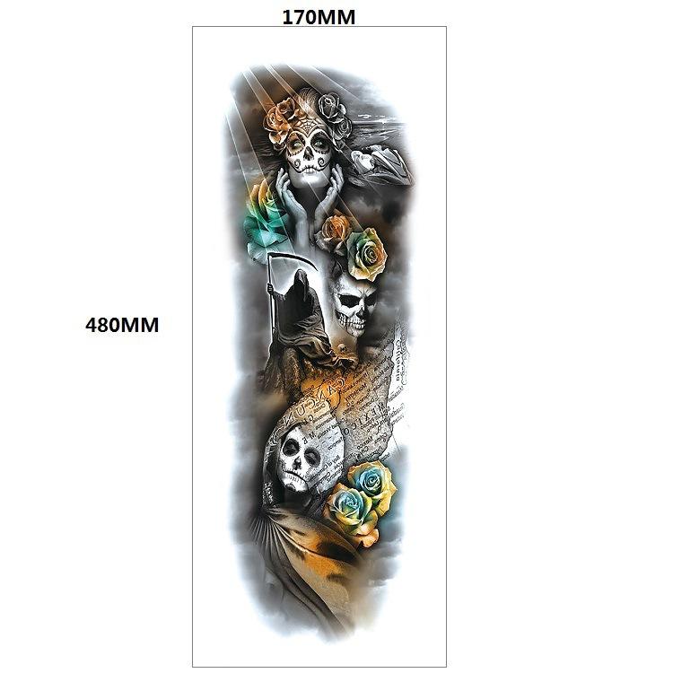 Волк Король Голова Волка Доминирующая Татуировка Цветок Рука Набор Наклейка На Полную Руку Большой Узор Наклейка Для Перевода На Воду Татуировка 170*480MM