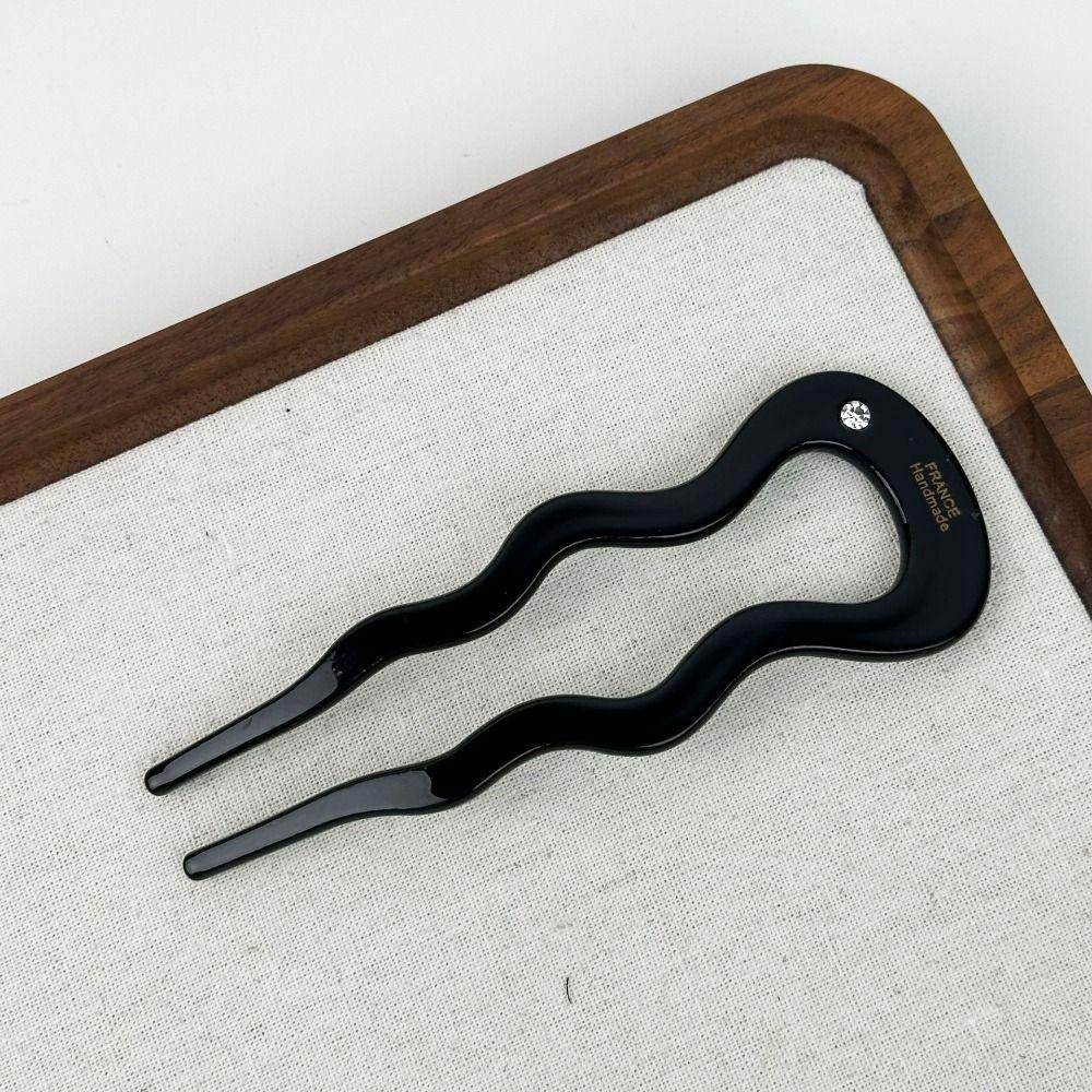 Волнистая U-образная заколка для волос в корейском стиле, U-образная шпилька, винтажная вилка для волос из ацетата, женская чёрный