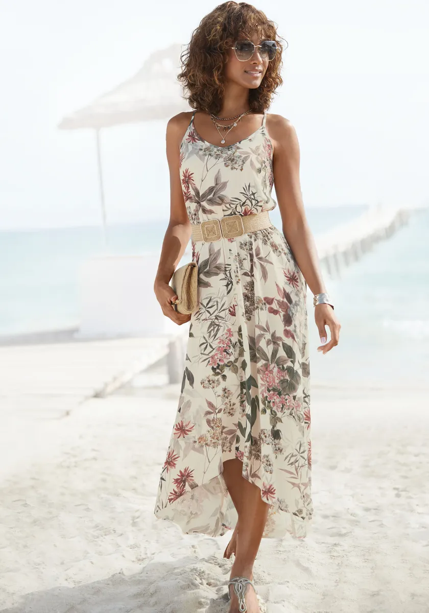 LASCANA Платье макси с цветочным принтом Легкое летнее пляжное платье в стиле кефаль, цвет Sand Bedruckt