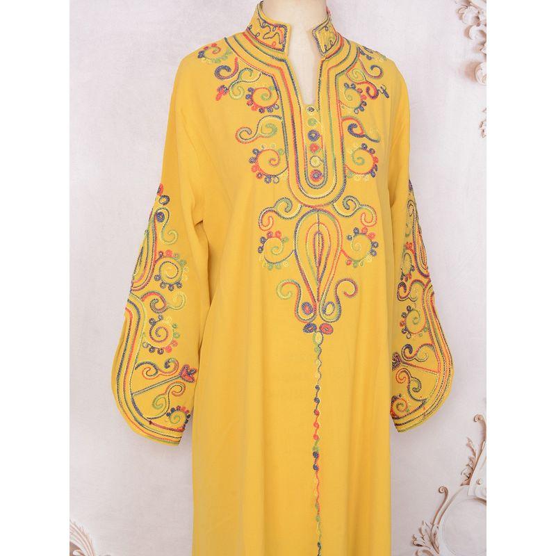 Волшебная Королева Ближний Восток Саудовская Аравия Халат Дубай Путешествие Вечеринка Веревка Вышивка Элегантность Длинные Рукава Платье Платья Yellow XXL