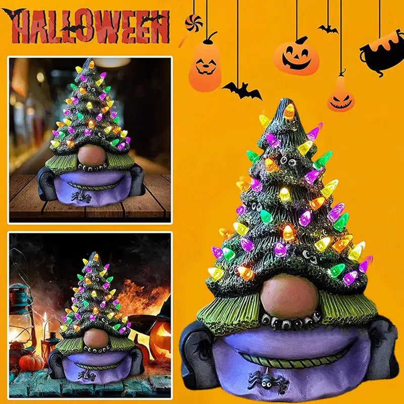 Волшебная ведьма гном дерево Хэллоуин призрак уличная световая полимерная статуя праздничное платье фиолетовые фигурки ужасов светящийся...