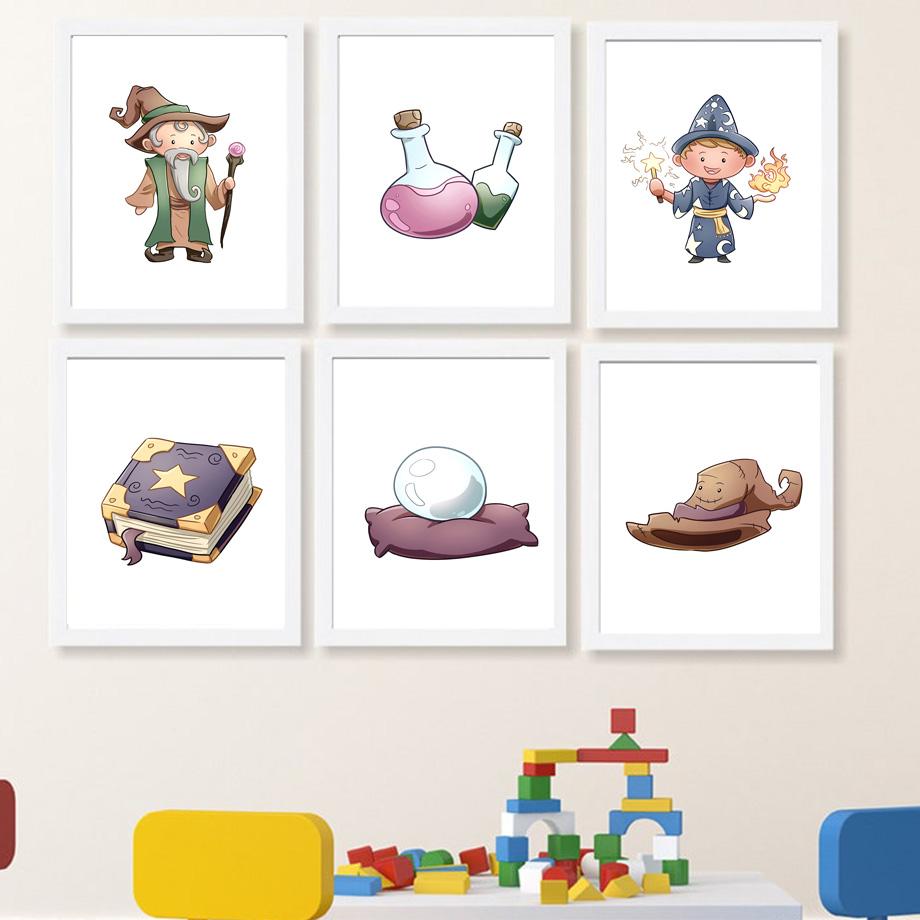 Волшебная школьная книга, хрустальный шар, детская настенная живопись, холст, картина, плакат на скандинавскую тему, настенные панно, декор для детской спальни