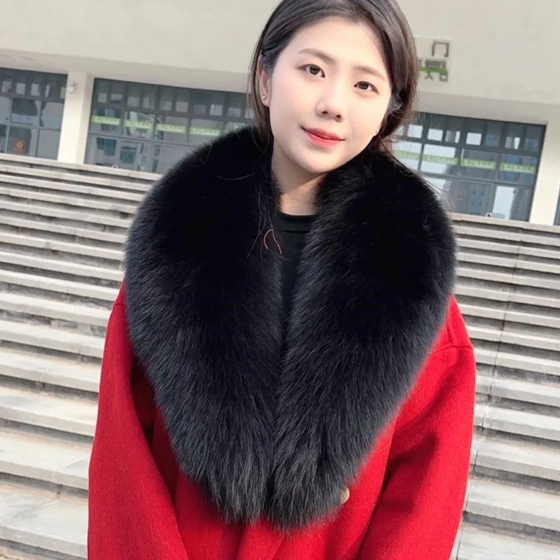 Воротник из лисьего меха, модное универсальное пальто из натурального меха, меховой воротник, роскошный меховой воротник, зимняя большая меховая шаль, женское пальто, декор с капюшоном