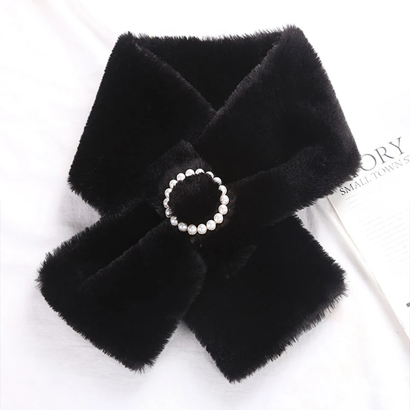 Воротник с жемчужными пуговицами, плюшевый шарф с перекрестными пуговицами, женская зимняя двухсторонняя плотная Защитная теплая шаль для ...