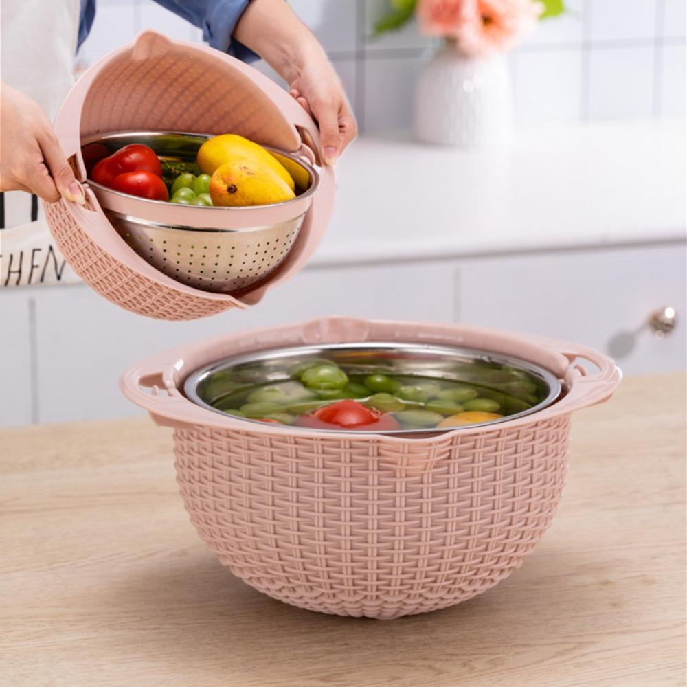 Вращающаяся корзина для мытья овощей с терками, кухонное сито, корзина для салата розовый