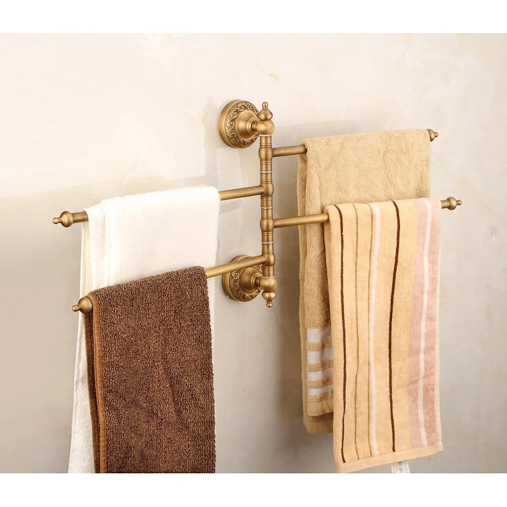 Вращающаяся медная вешалка для полотенец Ретро латунная полка для ванной комнаты Держатель для полотенец 4-х ярусная прочная компактная полка для ванной комнаты