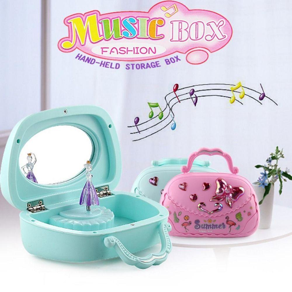 Вращающаяся музыкальная шкатулка в форме сумки для девочек, мультяшная музыкальная шкатулка для украшений, музыкальная шкатулка в виде сумки, подарок на день рождения розовый