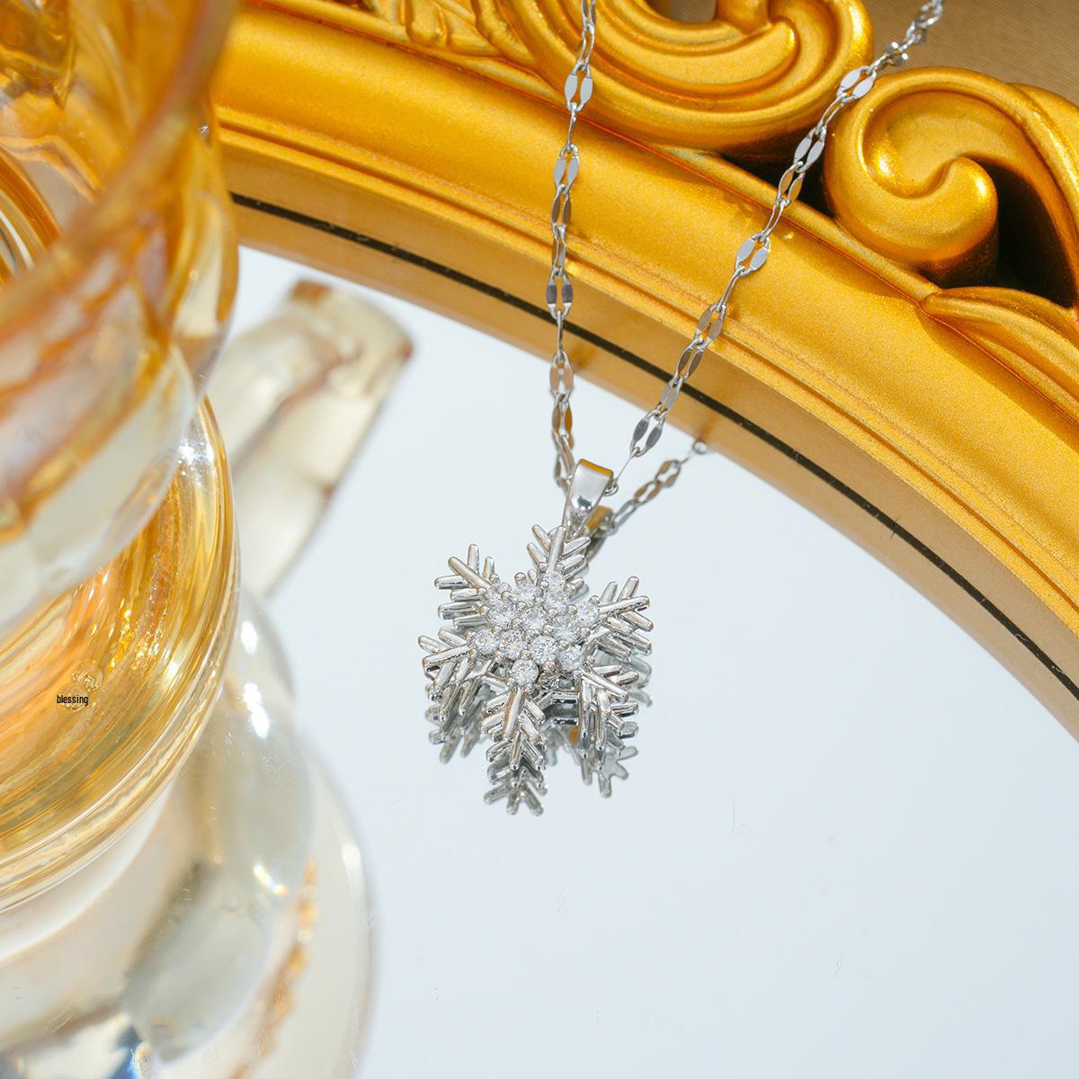 Вращающееся ожерелье с подвеской в виде снежинки со стразами - микро-инкрустированная титановая стальная ключичная цепочка