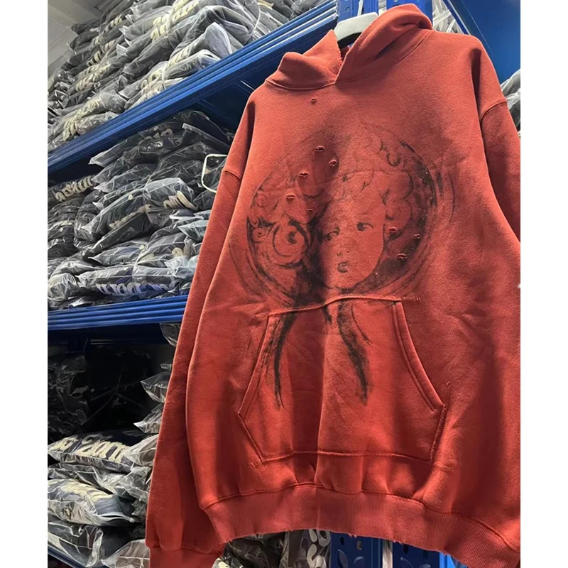Винтажная потертая толстовка с капюшоном для мужчин и женщин, Высококачественная уличная одежда, разрушенный пуловер
