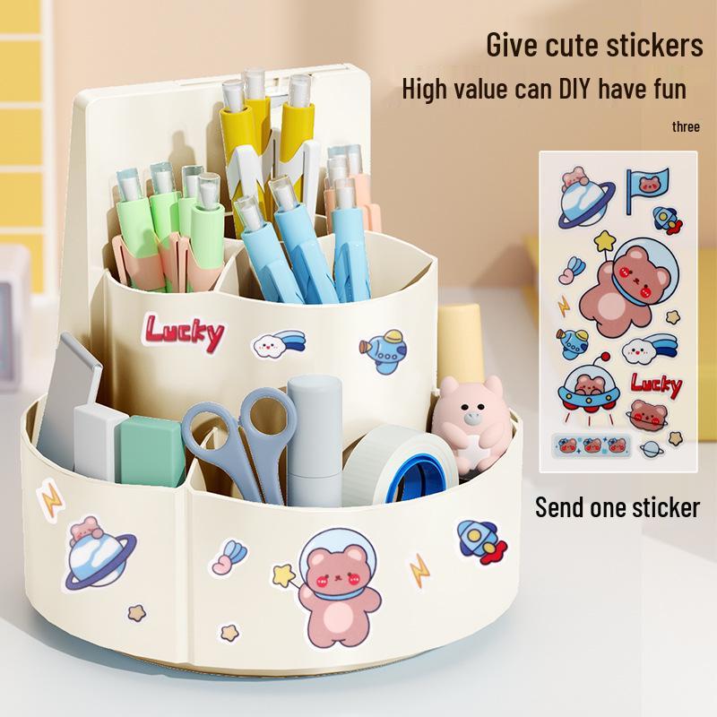 Вращающийся на 360° держатель для ручек и карточек: Прозрачный настольный органайзер большой вместимости для ручек и кистей для макияжа. Blue Rotatable 2-in-1