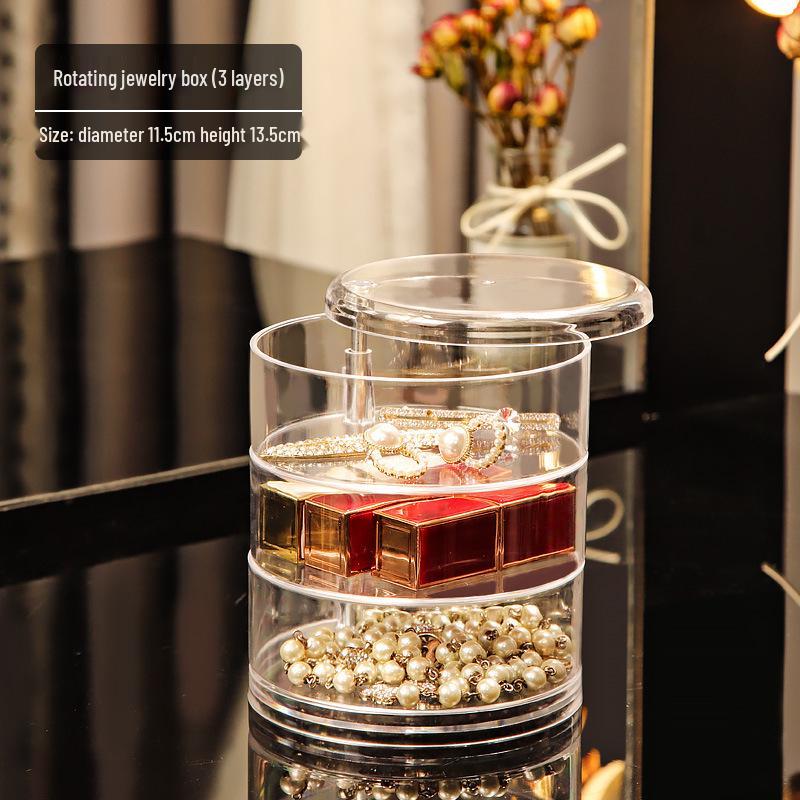 Вращающийся прозрачный ящик для хранения косметики с многослойным дизайном для украшений и заколок для волос, пыленепроницаемый, в стиле инс