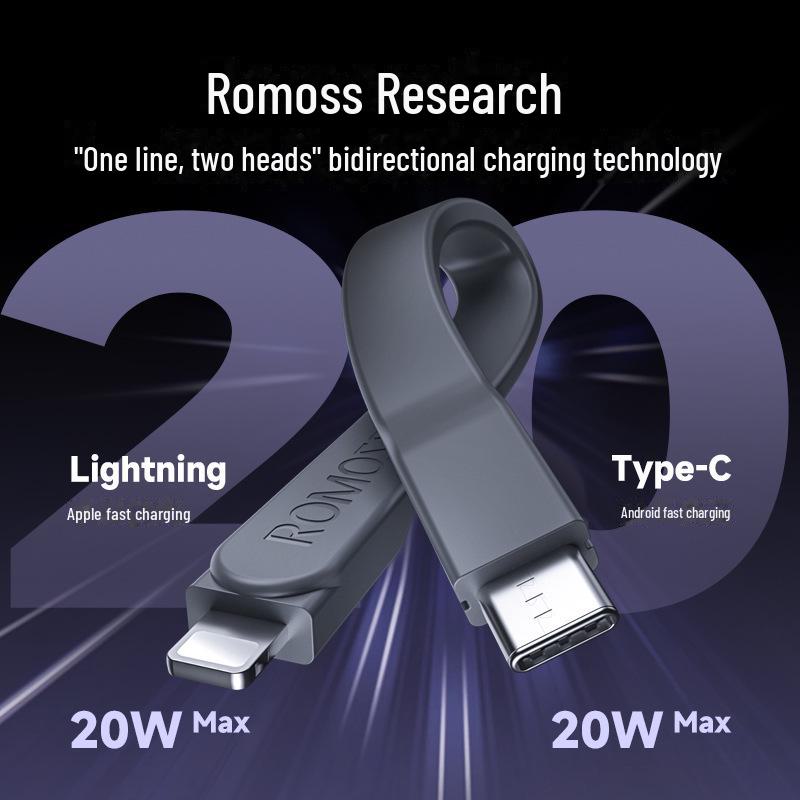 Встроенный кабель ROMOSS Power Bank для Huawei и Apple 8-16, двусторонняя быстрая зарядка. Apple PD Fast Charging Line