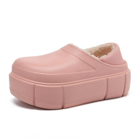 Fur Lined Platform Clogs for Women Winter Warm Cozy Waterproof Plush House Slippers Non-slip Garden Shoes Indoor Outdoor Mules
