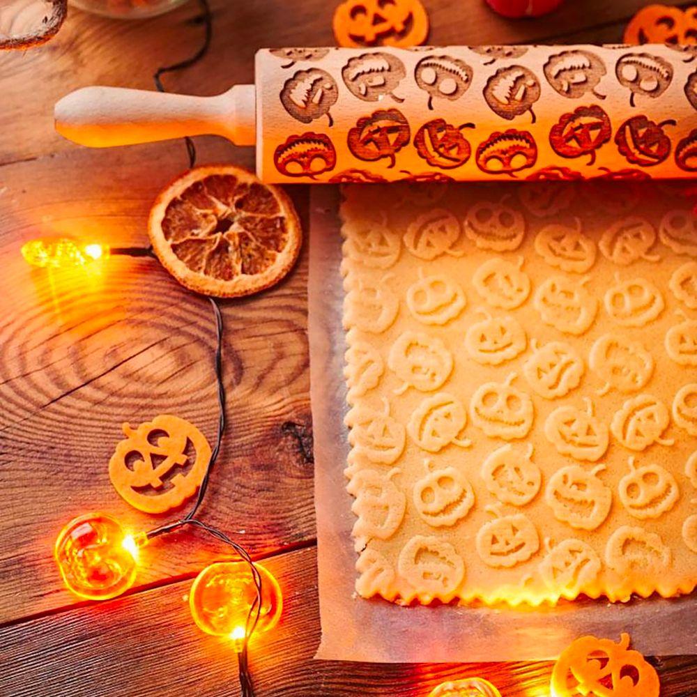 Выпекать печенье Торт Узорчатый ролик Деревянное тиснение 3D Тыква Декоративная скалка для Хэллоуина