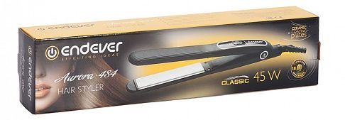 Выпрямитель для волос Endever AURORA 484, 200°C, 50Вт, керамическое покрытие, 1 режим, петля для подвешивания, 1.8м, петля для подвешивания, вращение шнура, фиксация в закрытом виде, термоизолированный наконечник, черный (80652), 484