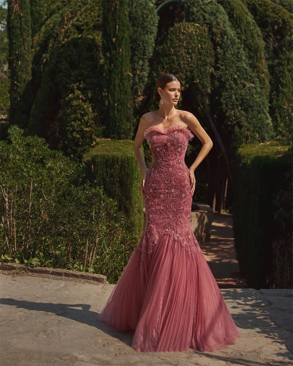Выпускные платья Eleagnt без бретелек Юбка-годе Цветочное платье с рюшами Длина до пола без рукавов кружевные Формальные Вечерние платья robe de bal