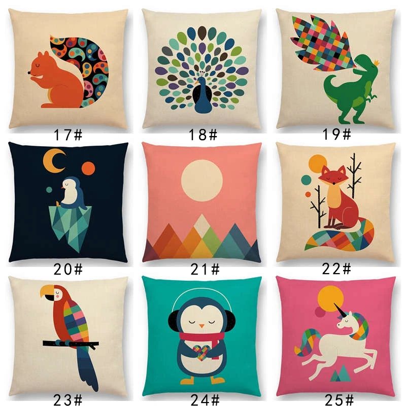 New Arrival Cute Unicorn Cartoon Animals Cushion Cover Penguin Giraffe Whale Deer Bunny Parrot Bee Dolphin Sofa Throw Pillow